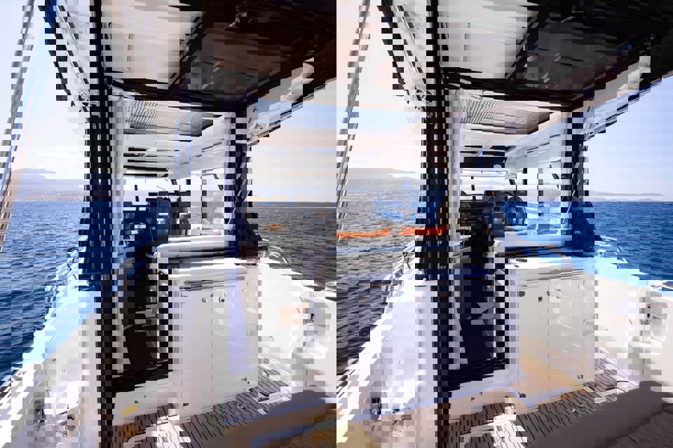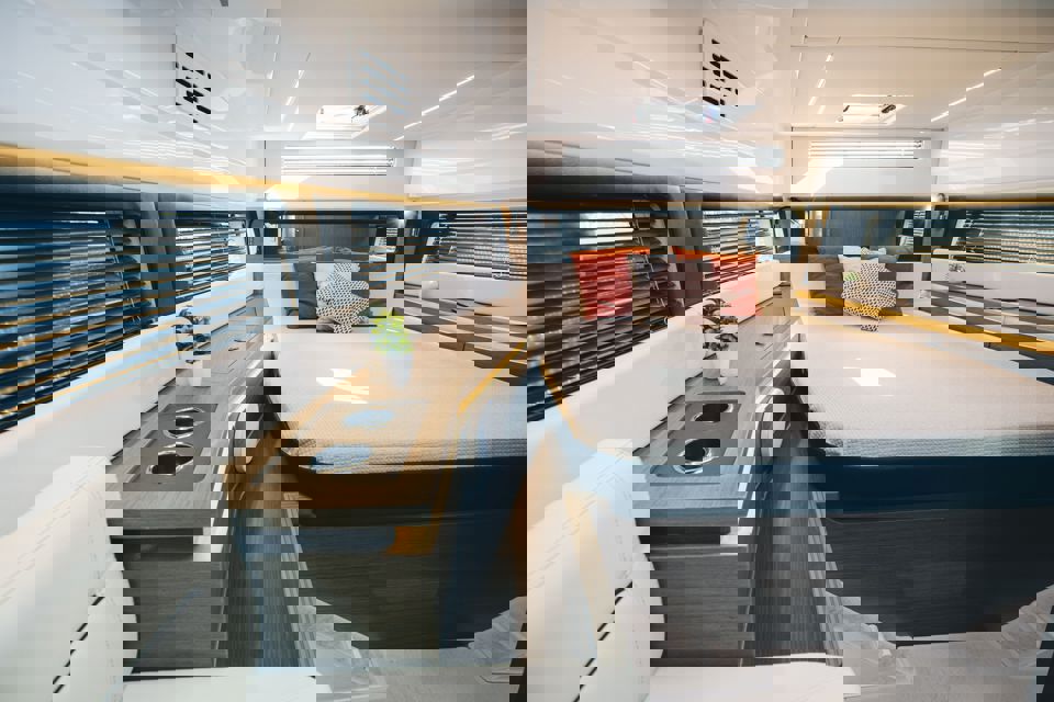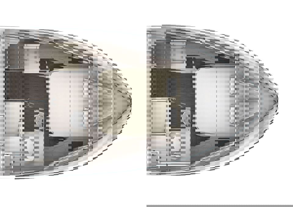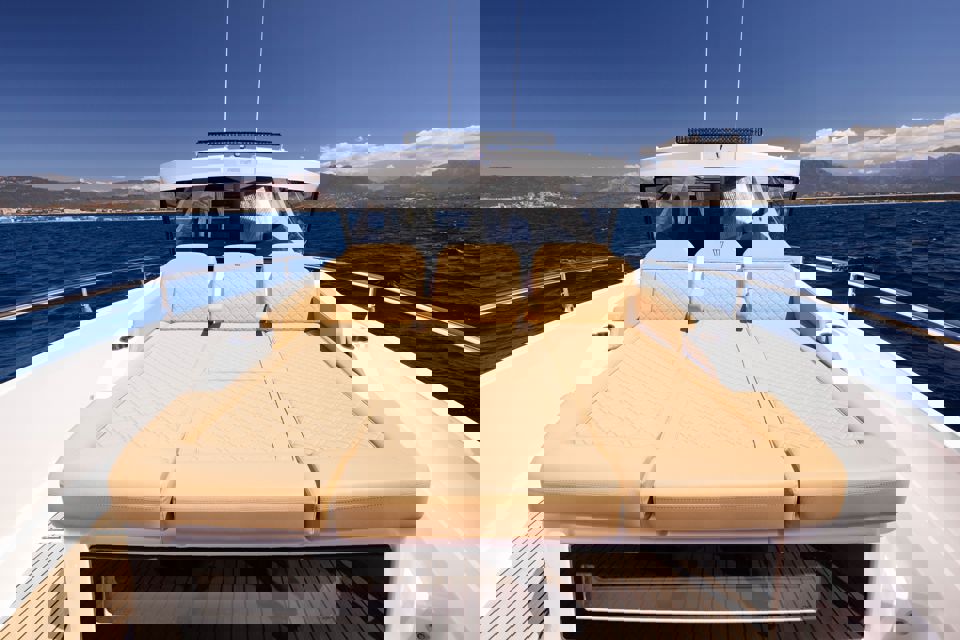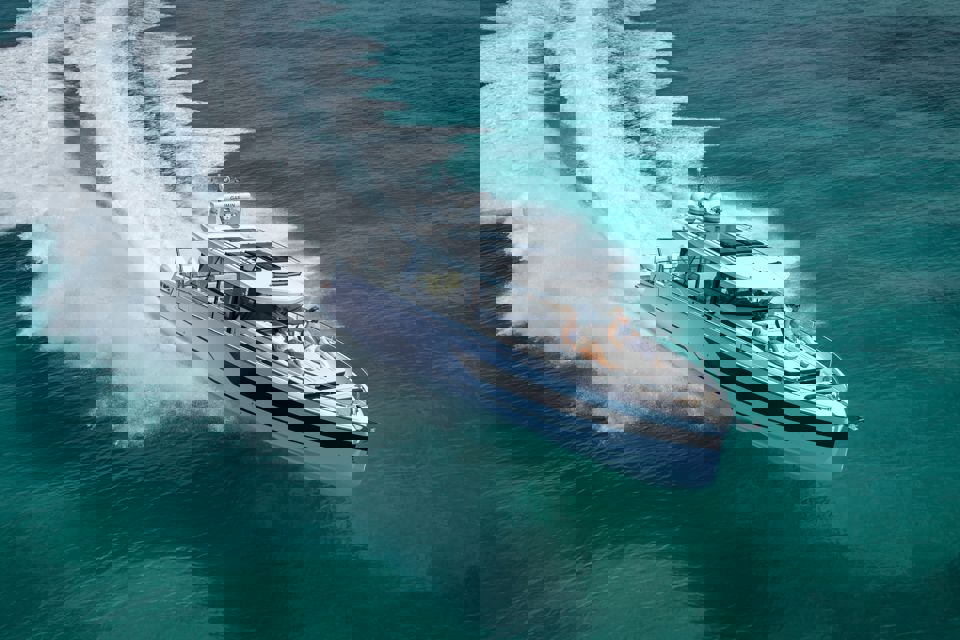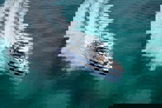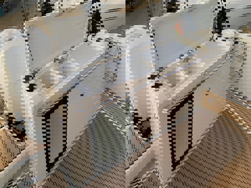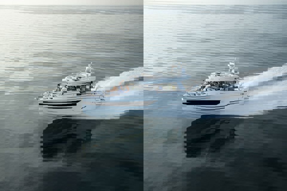 Tri snažna izvanbrodska motora pružaju impresivnu brzinu i velik doseg, dok zatvorena kormilarnica i prostrane palube jamče sigurnu i ugodnu plovidbu u svim vremenskim uvjetima. U unutrašnjosti se nalazi udobna kabina s ležajem za dvije osobe te potpuno opremljen toalet s tušem i električnim WC-om. Dodatni pretvorivi ležaj u salonu omogućuje bezbrižan noćni boravak na moru.