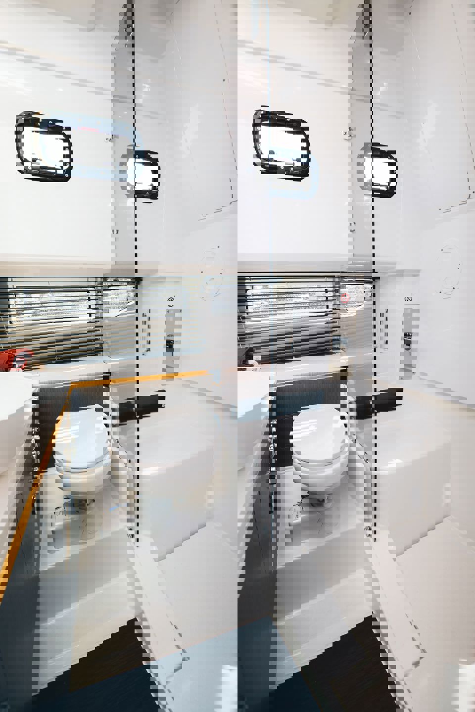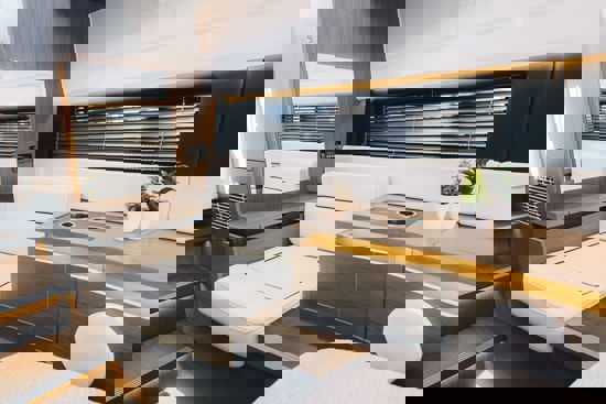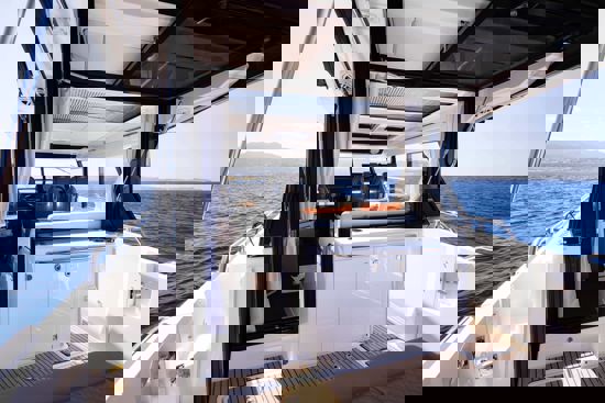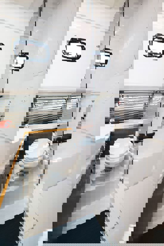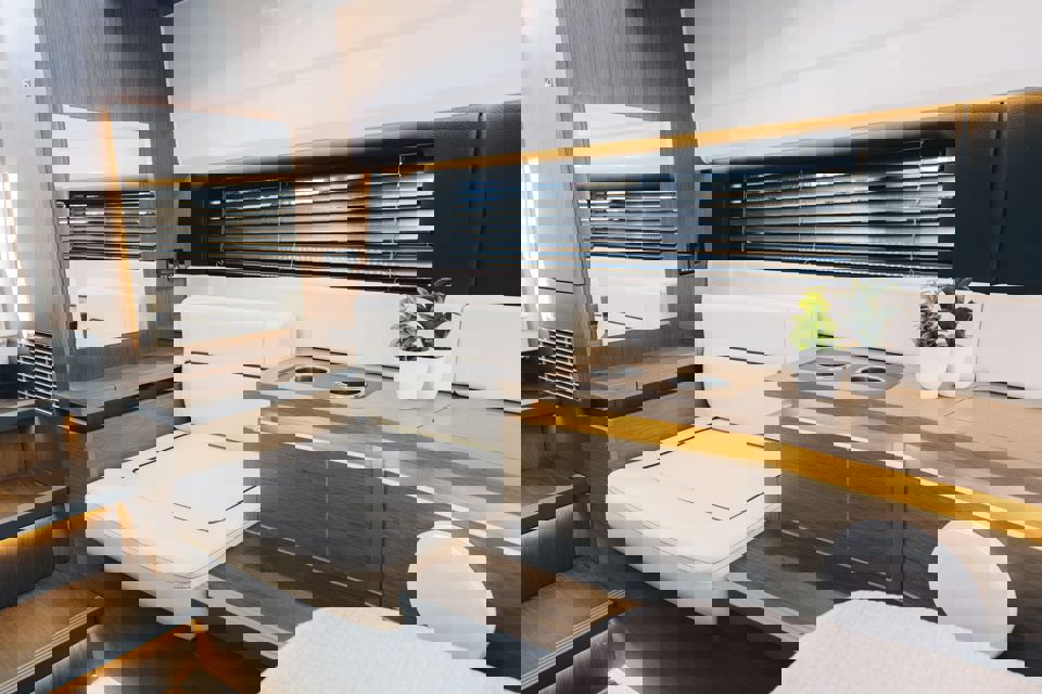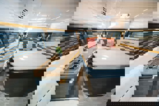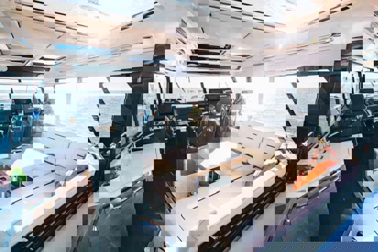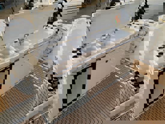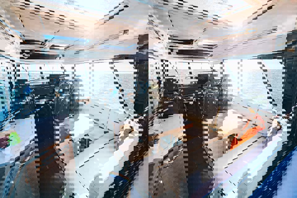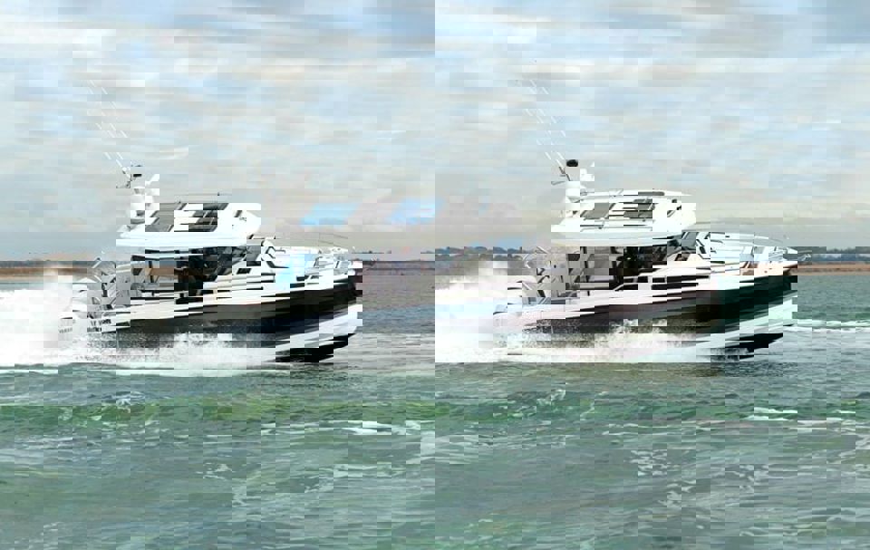 Tri snažna izvanbrodska motora pružaju impresivnu brzinu i velik doseg, dok zatvorena kormilarnica i prostrane palube jamče sigurnu i ugodnu plovidbu u svim vremenskim uvjetima. U unutrašnjosti se nalazi udobna kabina s ležajem za dvije osobe te potpuno opremljen toalet s tušem i električnim WC-om. Dodatni pretvorivi ležaj u salonu omogućuje bezbrižan noćni boravak na moru.